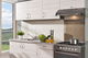 Jednoduché, tvarovo čisté hladké predné plochy z laminovanej drevotrieskovej dosky v jasných tónoch unifarby s dizajnovou úchytkou a použitím netradičných dverí so sklom, vytvárajú vkusnú, milú a modernú kuchyňu do každého priestoru. Kuchynská zostava je priama a vhodná do menších bytov či apartmánov. Vybavenie je len na jednej stene a sústredené na najmenšom možnom priestore.