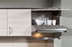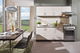 Jednoduché, tvarovo čisté hladké predné plochy z laminovanej drevotrieskovej dosky v jasných tónoch unifarby s dizajnovou úchytkou a použitím netradičných dverí so sklom, vytvárajú vkusnú, milú a modernú kuchyňu do každého priestoru. Kuchynská zostava je priama a vhodná do menších bytov či apartmánov. Vybavenie je len na jednej stene a sústredené na najmenšom možnom priestore.