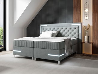 Kontinentálna posteľ 200x200 cm Suhak 3 LED (sivá) *bazár