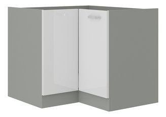 Rohová dolná kuchynská skrinka Brunea 90x90 DN 1F BB (sivá + lesk biely)
