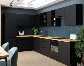 Ak máte k dispozícii veľkorysý priestor, maximalizujte jeho využitie rohovou kuchynskou linkou v tvare písmena L, prípadne linkou do tvaru písmena U. Tieto linky poskytujú rozdelenie priestoru na zóny, takže môžete v kuchyni pracovať zároveň dvaja. Zatiaľ čo vy budete pripravovať pokrm, váš partner sa môže venovať umývaniu riadov. Zvyšný priestor na pracovnej doske dobre poslúži pre skladovanie spotrebičov.