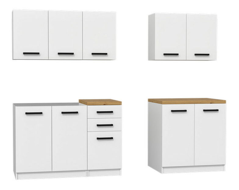 Kuchynská zostava 200 cm Katiossa 1 v elegantnej bielej farbe je ideálnym riešením pre moderné kuchyne, kde sa kladie dôraz na funkčnosť a estetiku. S odolnými povrchmi, ktoré sú rezistentné voči poškriabaniu a slnečnému žiareniu, táto zostava zaručuje dlhú životnosť a jednoduchú údržbu. Každá skriňa je vybavená vlastným pracovným doskom, čo umožňuje flexibilné usporiadanie podľa vašich potrieb. Montáž je jednoduchá vďaka priloženej inštrukcii a všetkým potrebným príslušenstvám. Vytvorte si štýlovú a praktickú kuchyňu s touto nadčasovou zostavou.