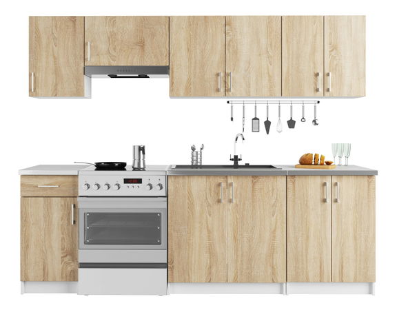 Kuchynská zostava 240 cm Lula TYP2 (biela + dub sonoma)