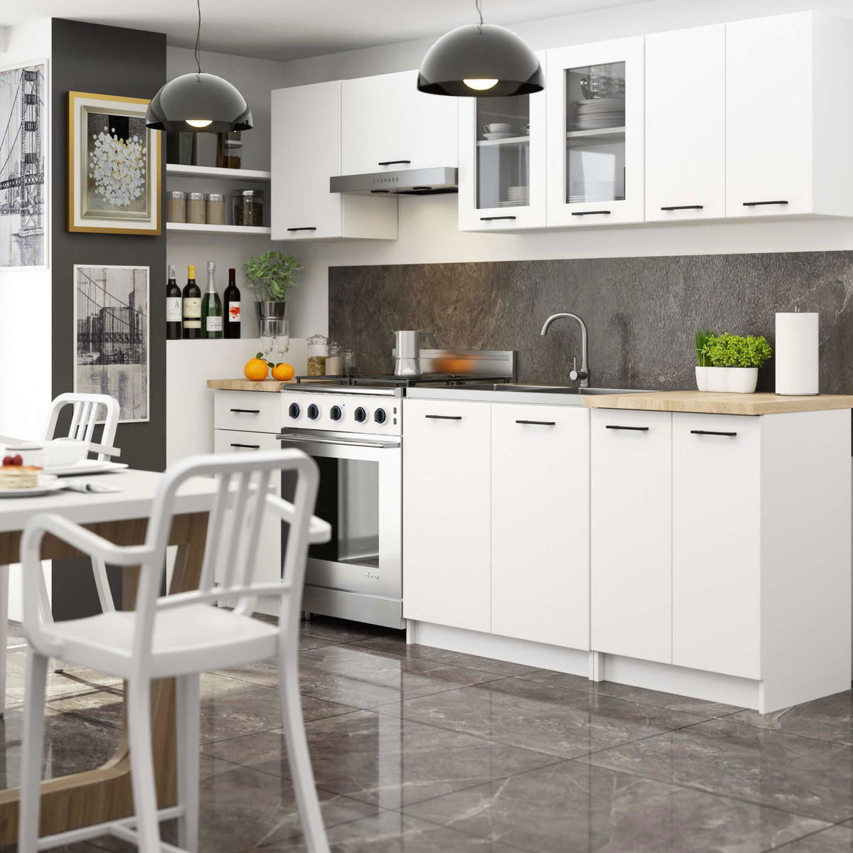 Kuchynská zostava 240 cm Ozara II B (biela)