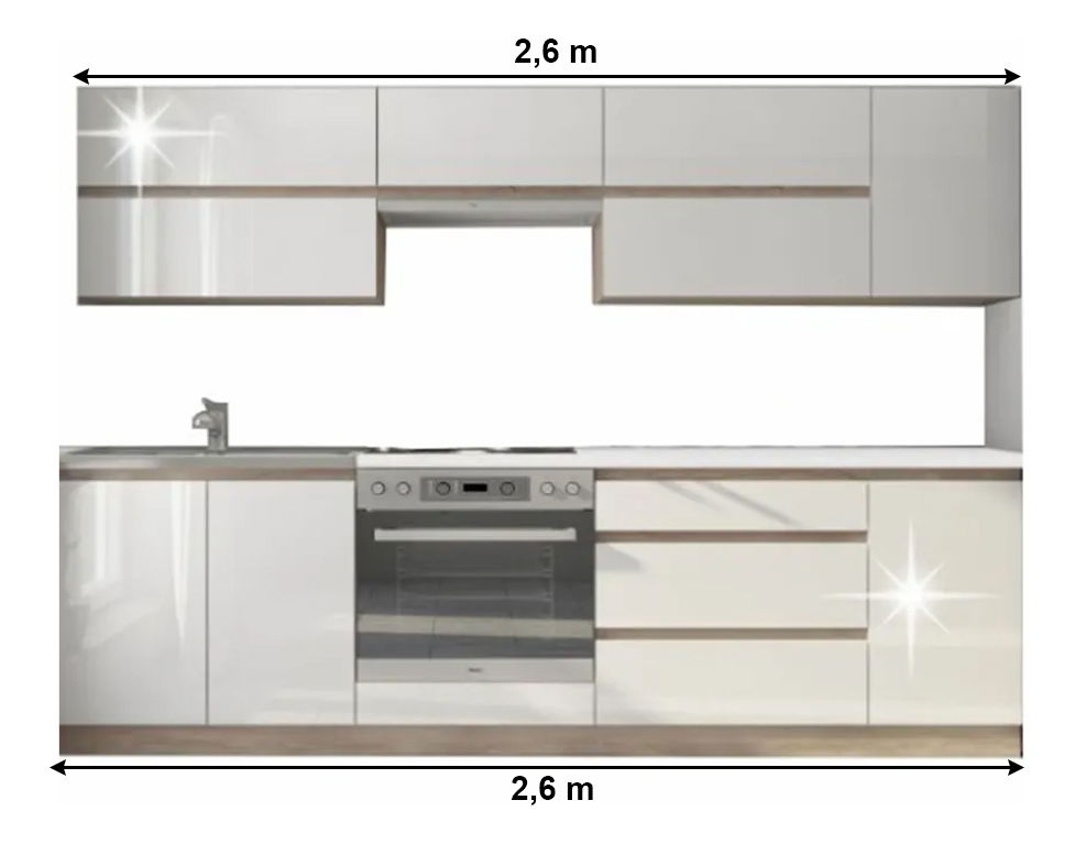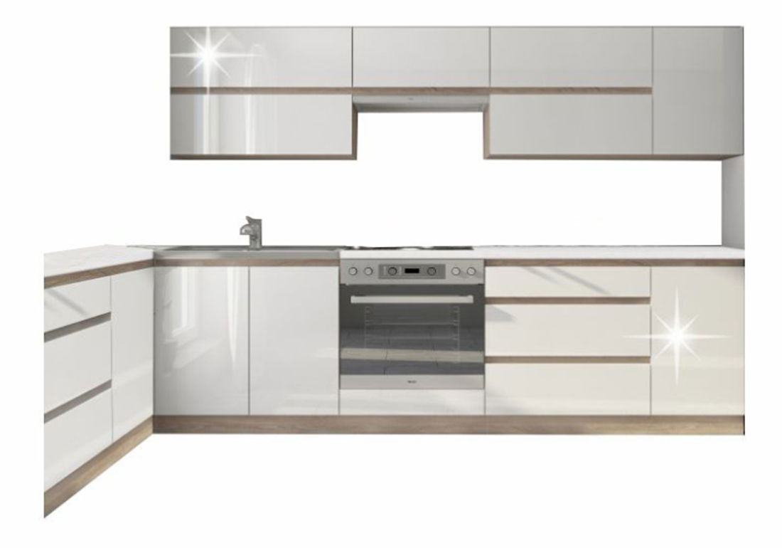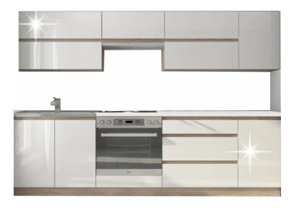 Kuchynská zostava 260 cm Lina (dub sonoma + vysoký lesk biely)