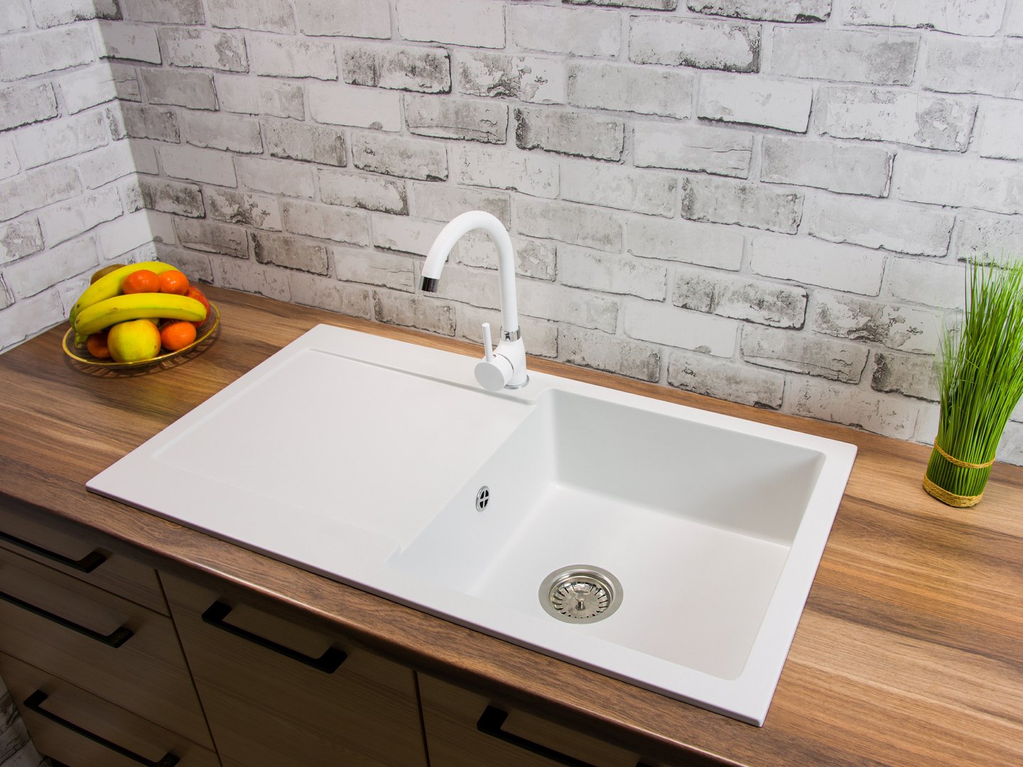 Kuchynský drez Adaxa (biela) (s 2 otvormi pre batériu) (L)