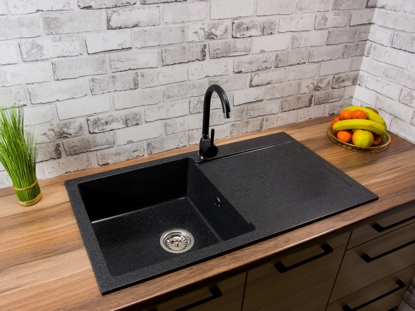 Kuchynský drez Adaxa (čierna + textúra) (s 1 otvorom pre batériu) (P)