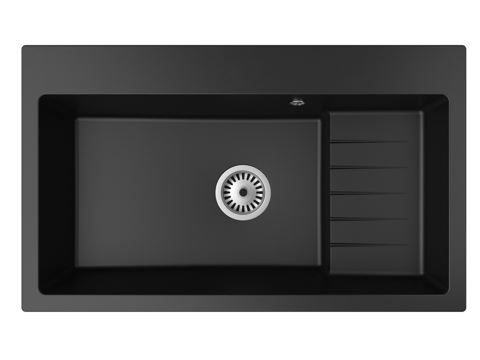 Jednokomorový kuchynský drez Akream (čierna) (bez otvoru pre batériu) je vynikajúcou voľbou pre náročných zákazníkov. Jeho jedinečný dizajn s moderným zníženým odkvapkávačom upúta pozornosť. Tento drez je vyrobený z granitu a vyznačuje sa mimoriadnou odolnosťou voči tepelným šokom, nárazom a poškriabaniu, takže je ideálny na každodenné používanie v kuchyni. Povrch drezu je protiplesňový, takže sa ľahko udržiava. Špecializované ochranné prostriedky na drezy vám s údržbou výrazne pomôžu. Okrem toho má tento drez vysokú odolnosť voči škvrnám a zmene farby a ľahko sa čistí.