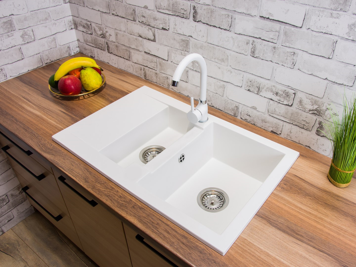 Kuchynský drez Dortuna (biela) (s 2 otvormi pre batériu) (L)