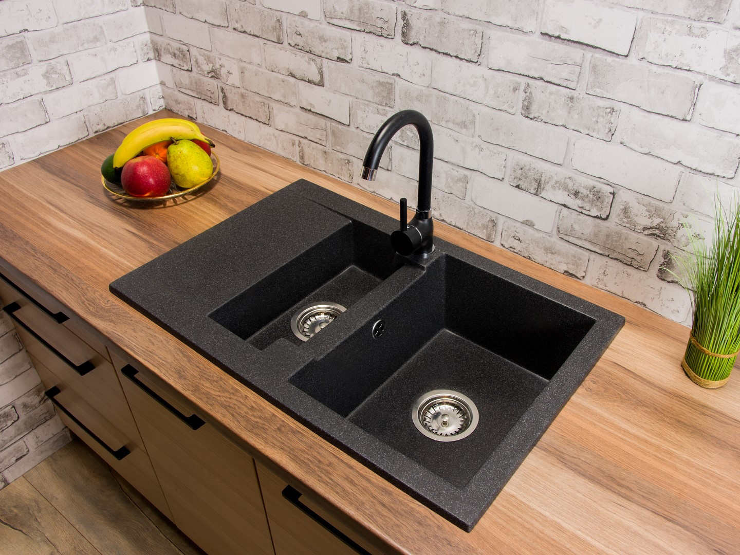 Kuchynský drez Dortuna (čierna + textúra) (s 2 otvormi pre batériu) (L)