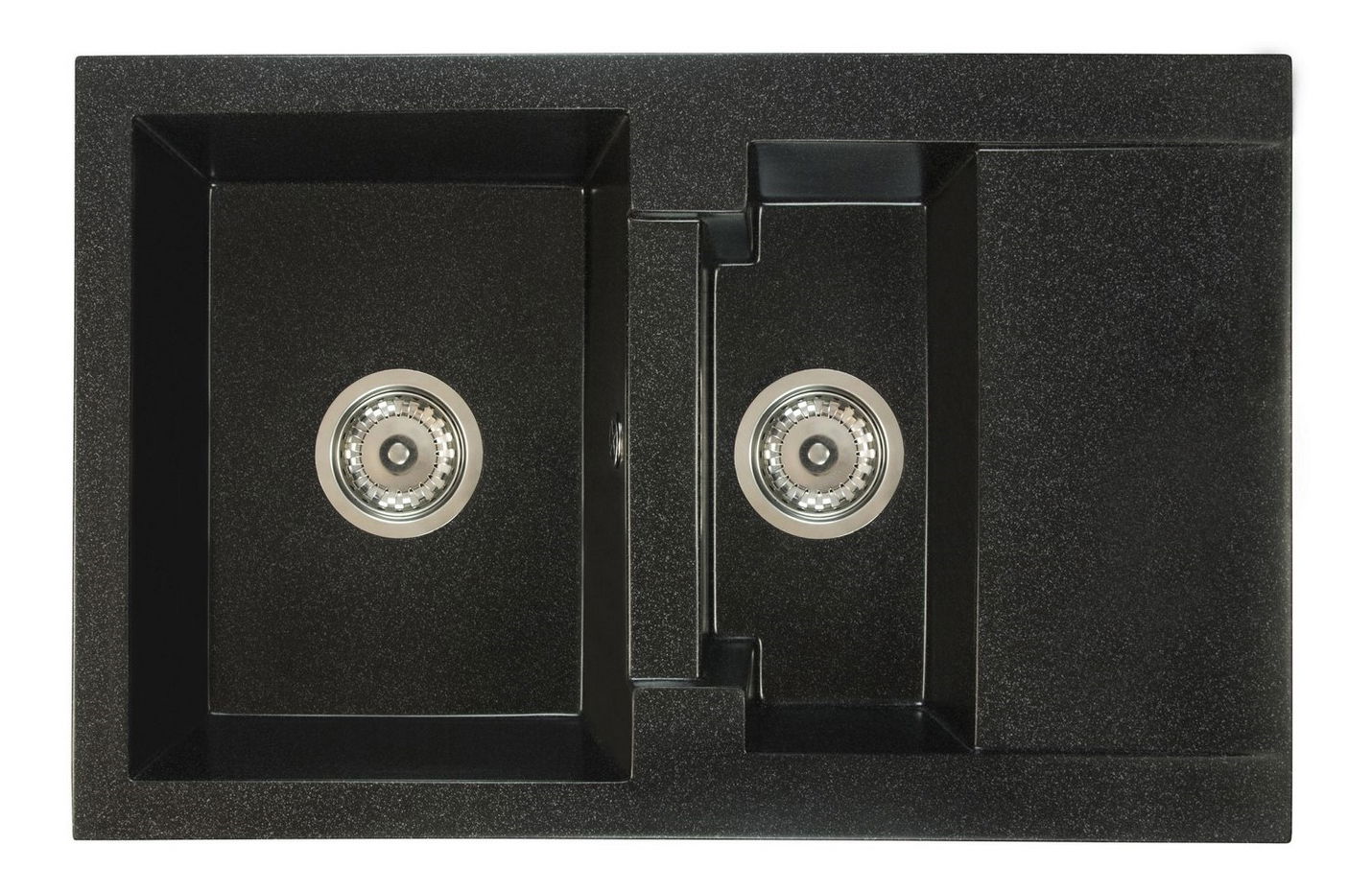 Kuchynský drez Dortuna (čierna + textúra) (s 2 otvormi pre batériu) (P)