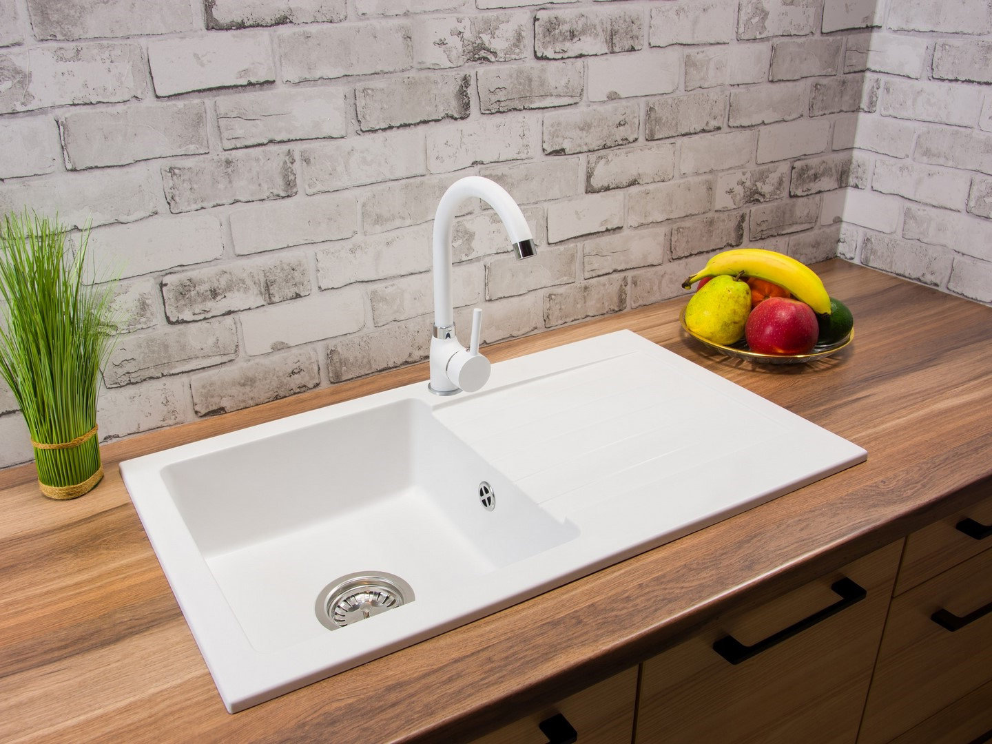 Kuchynský drez Lemmion (biela) (s 2 otvormi pre batériu) (P)