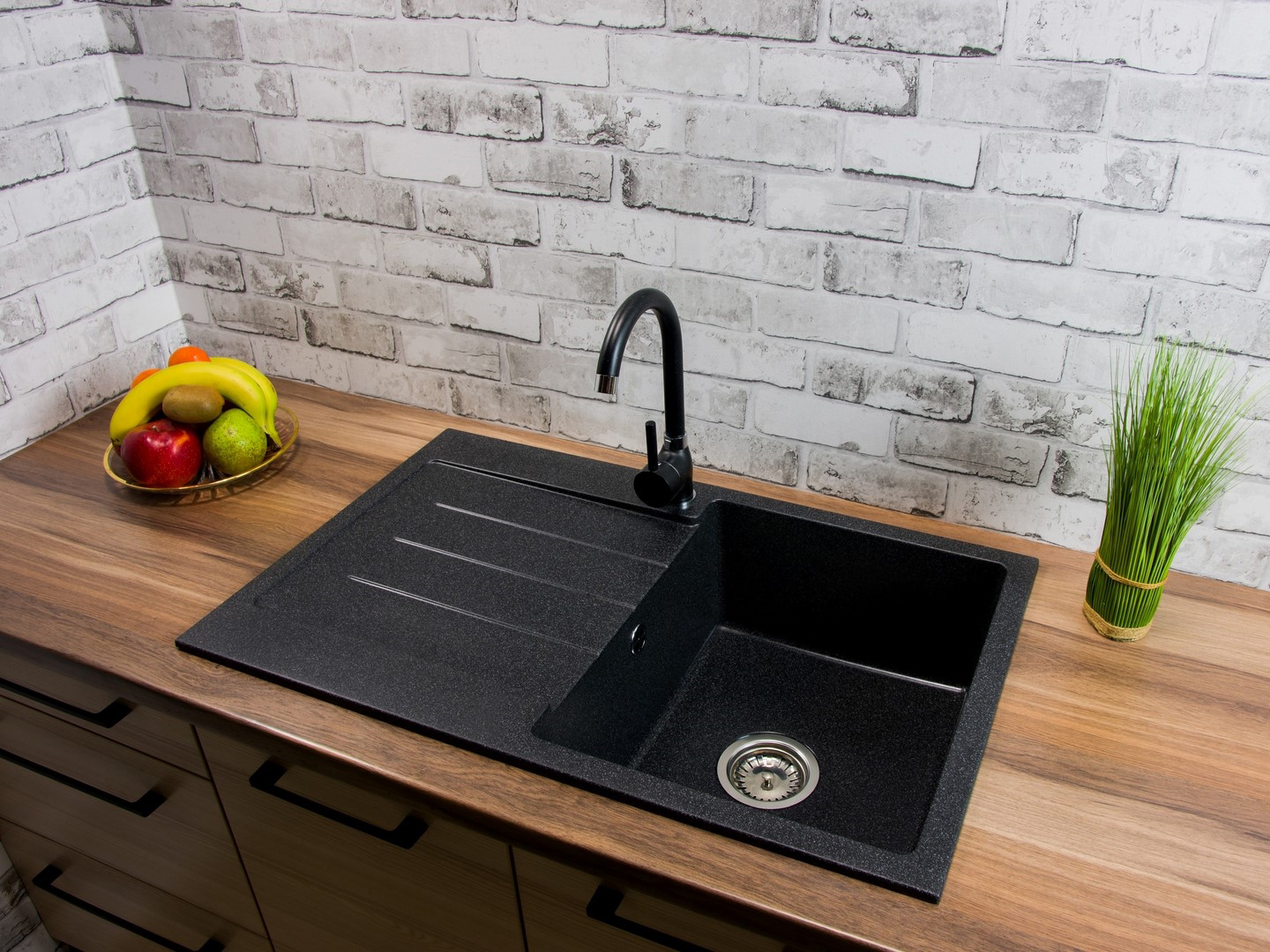 Kuchynský drez Ruxom (čierna + textúra) (bez otvoru pre batériu) (L)