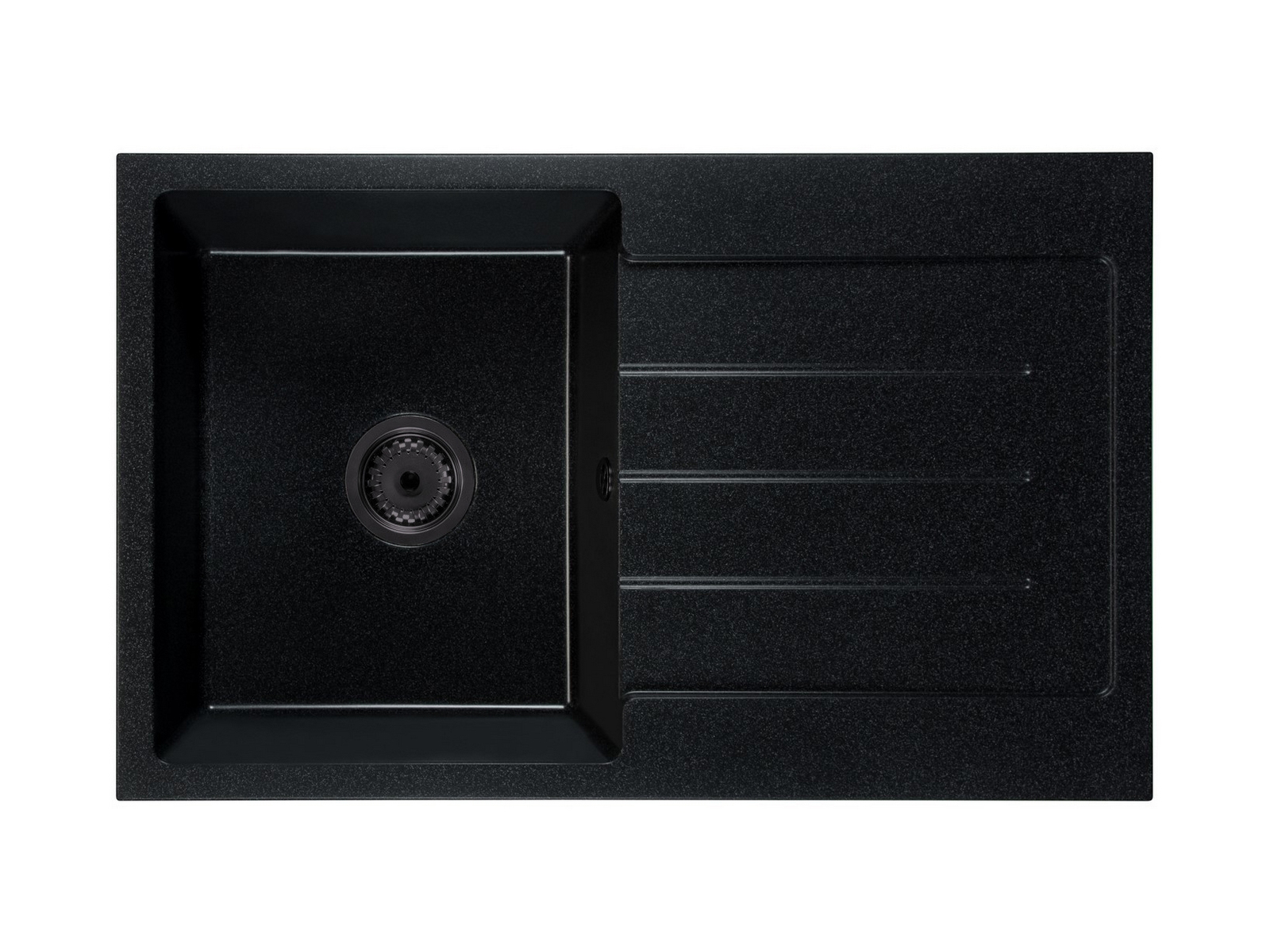 Jednokomorový kuchynský drez Ruxom (čierna + textúra) (s 2 otvormi pre batériu) (Pr) je vysokokvalitný výrobok z granitu, ktorý je extrémne odolný proti teplotným šokom, nárazom a poškriabaniu. Jeho povrch je protiplesňový, čo zaručuje jednoduchú údržbu a odolnosť voči škvrnám a zmene farby. Drez Ruxom má ľahko čistiteľný povrch, ktorý rýchlo a účinne odstraňuje nečistoty. S výškou 20 cm, šírkou 79,5 cm a hĺbkou 49,5 cm, tento drez je ideálnym doplnkom pre každú kuchyňu.