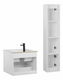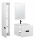 Táto sada kúpeľňového nábytku je skvelou voľbou na uschovanie vašich potrieb, aj keď máte obmedzený priestor. Je navrhnutá tak, aby sa do nej zmestili všetky potrebné veci. Súprava sa skladá zo skrinky pod umývadlo, vysokej nástennej skrinky a zrkadla. Skrinka pod umývadlo má v sebe zabudované obdĺžnikové umývadlo a dve priestranné zásuvky. Nástenná skrinka má dve dvierka a štyri priehradky na všetky potrebné kúpeľňové potreby a doplnky. Zrkadlo, ktoré je základným doplnkom každej kúpeľne, má rám s LED osvetlením a možno ho rozsvietiť pomocou dotykového tlačidla. Celá sada je v klasickej bielej farbe, takže ľahko zapadne do akéhokoľvek štýlu interiéru.