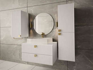 - Skrinka pod umývadlo – súčasťou vybraných skriniek je aj umývadlo, čo vám môže výber uľahčiť. Je zabudované priamo do skrinky, ktorá mu je prispôsobená na mieru. Pri typoch bez umývadla, ho viete dokúpiť dodatočne, no musí to byť závesný typ, ktorý pod sebou skrýva dostatočný priestor pre danú skrinku.