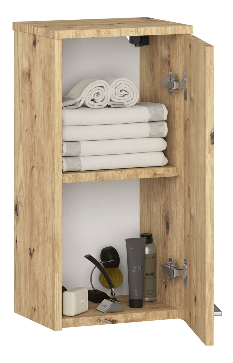 Kúpeľňová skrinka Farid TYP2 v dekore dub artisan je riešením vhodným pre každý moderný interiér, ktorý vyžaduje praktický a štýlový nábytok. Jej kompaktné rozmery umožňujú umiestnenie aj do menších kúpeľní, pričom poskytuje dostatok úložného priestoru na drobnosti, ktoré zvyknú zbytočne zaberať miesto.