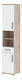 Vysoká kúpeľňová skriňa s množstvom úložného priestoru je uzavretá dvierkami. V strednej časti je rozdelená otvoreným úložným priestorom s poličkou.