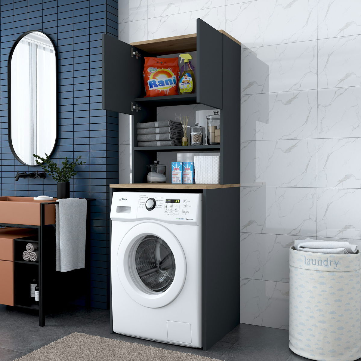 Kúpeľňová skrinka - Karoline 101 (Orech + Antracit) je štýlovým a praktickým doplnkom pre vašu kúpeľňu. S výškou 183,6 cm, šírkou 65 cm a hĺbkou 60 cm ponúka dostatok úložného priestoru pre vaše kúpeľňové potreby. Je vyrobená z kvalitného materiálu Orech + Antracit, ktorý zabezpečuje pevnosť a odolnosť skrinky. Skrinka má dostatok políc a zásuviek na usporiadanie a skladovanie všetkých vašich toaletných potrieb. S elegantným dizajnom a modernou farbou bude táto skrinka skvelým doplnkom pre akýkoľvek kúpeľňový interiér.