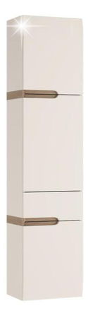 Luxusná sektorová zostava vhodná na zariadenie luxusných kúpeľní. Je vyrobená z laminovanej DTD, ktorá je odolná voči poškriabaniu, vhlkosti a vysokej teplote. Vďaka týmto vlastnostiam predĺži životnosť Vášho nábytku. Farebné prevedenie je biela v kombinácii s farbou dreva dub sonoma truflový. Predné časti sú vyrobené z MDF bielej farby s extra vysokým leskom HG. Príjemný nemecký dizajn s elegantnými hnedými doplnkami. Dvierka jednotlivých skriniek majú moderné zaoblené hrany. Možnosť dokúpenia LED osvetlenia do presklených častí vitrín.