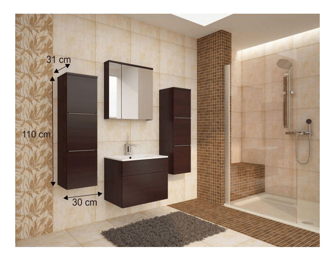 Kúpeľňová skrinka Maeve (wenge) s výškou 110 cm a hĺbkou 31 cm vám poskytne obrovský úložný priestor pre všetky vaše hygienické potreby. Disponuje policami, na ktoré môžete usporiadať všetko tak, aby bolo pre vás jednoducho dostupné. K dispozícii je tiež 2-kg nosnosť polic. Vyrábaná je z MDF/DTD laminovaného materiálu. S touto skrinkou bude vaša kúpeľňa uprataná a vkusne zariadená.