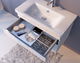 Kúpeľňová skrinka na stenu s umývadlom, ktorá má príťažlivý moderný dizajn a prinesie Vám aj funkčné riešenia úložného priestoru. Skrinka má dve zásuvky - užšiu a širšiu. Do nich si môžete pohodlne odložiť potrebné doplnky, ktoré chcete mať v kúpeľni vždy po ruky. Zmestí sa do nich manikúra, fén, osušky a iné kozmetické potreby. Zásuvky sa otvárajú pomocou elegantných výrezov.