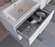 Závesná skrinka na stenu s umývadlom. Skrinka má dve zásuvky s podlhovastým kovovým úchytom. Praktická najmä pre kozmetiku, uteráky, fén, či kulmu na vlasy.