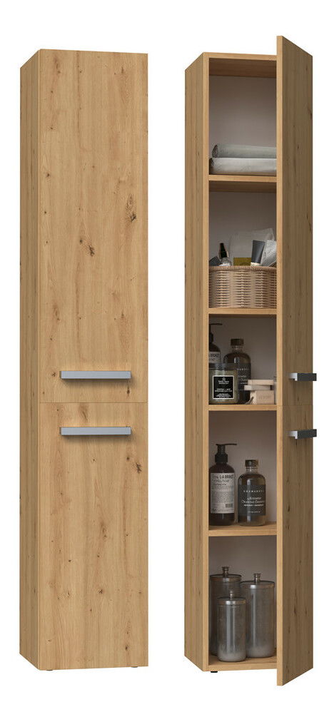Kúpeľňová skrinka Neltossa 10 v elegantnej farbe dub artisan je ideálnym riešením pre každú modernú kúpeľňu, kde je potrebné efektívne usporiadanie priestoru. Jej minimalistický dizajn s praktickými úchytmi z plastu v striebornej farbe zabezpečuje pohodlný prístup k obsahu skrinky. S rozmermi 30 cm hĺbky a 31 cm šírky ponúka dostatok úložného priestoru bez zbytočného zaťaženia miestnosti. Skrinka je vyrobená z kvalitnej laminovanej drevotriesky, čo zaručuje jej dlhú životnosť a jednoduchú údržbu. Neltossa 10 je skvelou voľbou pre tých, ktorí hľadajú kombináciu funkčnosti a estetiky.