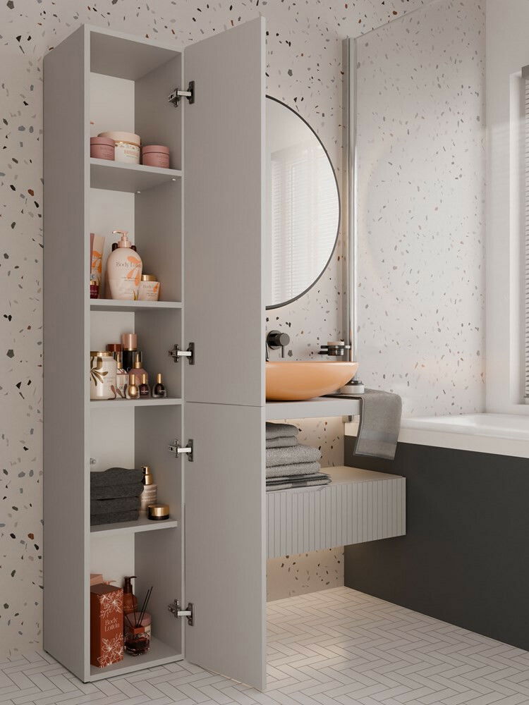 Kúpeľňová skrinka Neltossa 11 v elegantnom kašmírovom odtieni je ideálnym riešením pre každú modernú kúpeľňu, kde je potrebné efektívne usporiadať priestor. Jej minimalistický dizajn s praktickými dverami a jemnými úchytmi zabezpečuje pohodlný prístup k obsahu, pričom systém TIP-ON umožňuje jednoduché otváranie dverí len jedným dotykom. Skrinka, vyrobená z kvalitnej laminovanej drevotriesky, ponúka nielen estetiku, ale aj funkčnosť, čím sa stáva skvelým doplnkom do vašej kúpeľne. S Neltossa 11 si môžete vytvoriť harmonický a usporiadaný priestor.