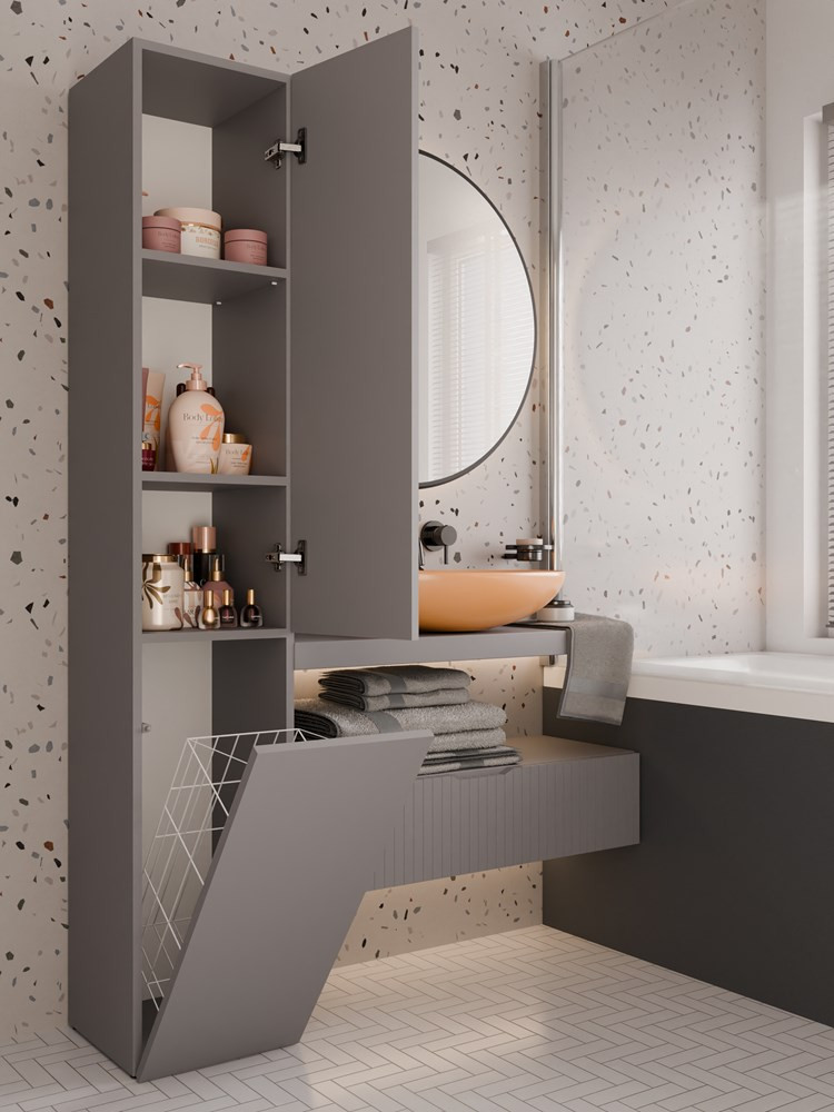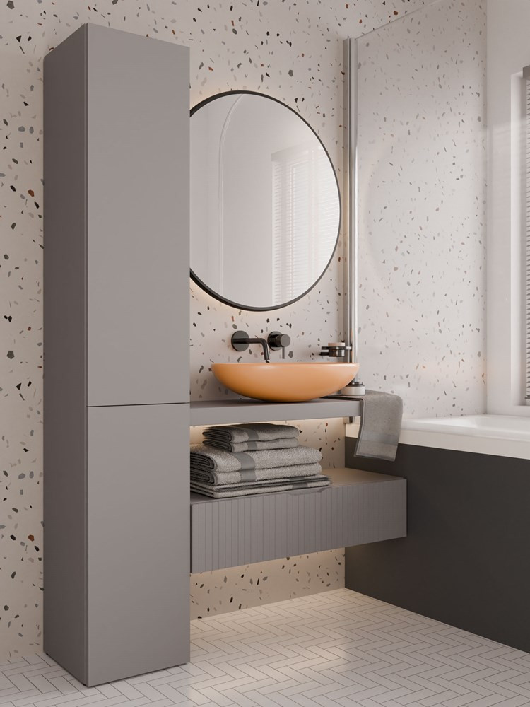 Kúpeľňová skrinka Neltossa 15 v elegantnej svetlohnedej farbe je ideálnym riešením pre každú modernú kúpeľňu. Jej minimalistický dizajn a praktické rozmery (šírka 31 cm, hĺbka 30 cm, výška 174 cm) umožňujú efektívne využitie priestoru, pričom poskytuje dostatok úložného miesta na všetky potrebné veci. Skrinka je vyrobená z kvalitnej laminovanej drevotriesky s odolnými ABS hranami, čo zaručuje dlhú životnosť. Oceníte aj systém TIP-ON, ktorý umožňuje jednoduché otváranie dverí s jemným stlačením. Neltossa 15 je skvelou voľbou pre tých, ktorí hľadajú kombináciu funkčnosti a estetiky.