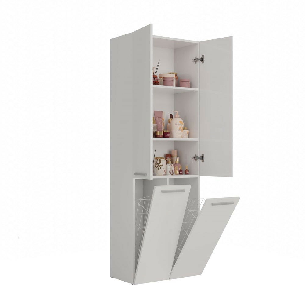 Kúpeľňová skrinka Neltossa 3 v elegantnej bielej farbe je ideálnym riešením pre každú modernú kúpeľňu, kde je potrebné efektívne usporiadanie priestoru. S jej minimalistickým dizajnom a praktickými prvkami, ako sú tri poličky a dva koše, ponúka dostatok úložného priestoru bez zbytočného zaberania miesta. Skrinka je vyrobená z kvalitnej laminovanej drevotriesky s ABS hranami, čo zaručuje jej vysokú odolnosť voči mechanickému a chemickému poškodeniu. S Neltossa 3 si môžete užiť kombináciu funkčnosti a estetiky vo vašej kúpeľni.