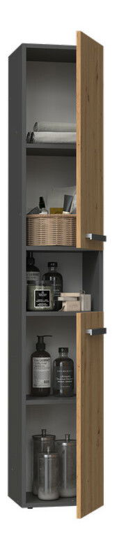 Kúpeľňová skrinka Neltossa 7 v elegantnej kombinácii antracitovej a dub artisan je ideálnym riešením pre každú modernú kúpeľňu. Jej minimalistický dizajn a praktické rozmery umožňujú efektívne usporiadanie priestoru bez zbytočného zaberania miesta. Skrinka je vyrobená z kvalitnej laminovanej drevotriesky, čo zaručuje jej odolnosť a dlhú životnosť. S možnosťou voľby strany otvárania dverí a jednoduchým prístupom k obsahu, sa stáva skvelým doplnkom pre tých, ktorí ocenia funkčnosť a estetiku. Tento kus nábytku prinesie do vašej kúpeľne štýlový a praktický prvok.