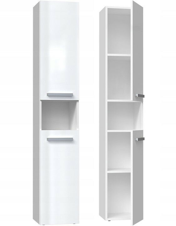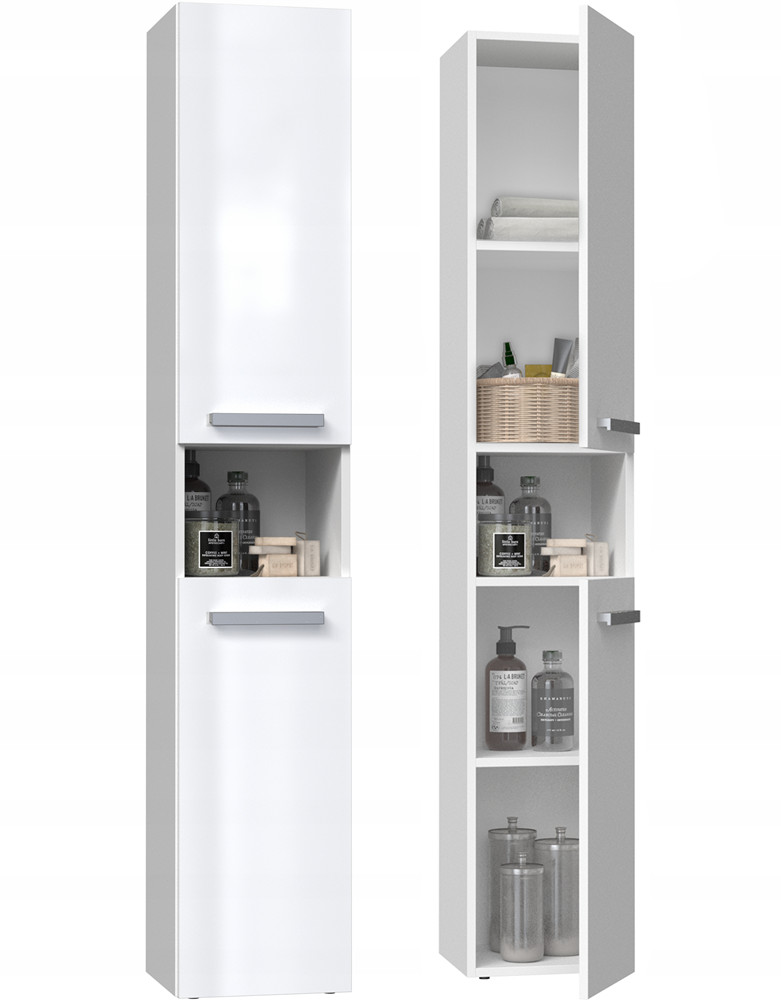 Kúpeľňová skrinka Neltossa 8 v lesklom bielom prevedení je ideálnym riešením pre každú modernú kúpeľňu, kde je potrebné efektívne usporiadať priestor. Jej minimalistický dizajn s praktickými uchopiteľnými dverami zabezpečuje jednoduchý prístup k obsahu a zároveň dodáva eleganciu. Skrinka je vyrobená z kvalitnej laminovanej drevotriesky, čo zaručuje jej odolnosť a dlhú životnosť. S možnosťou voľby strany otvárania dverí a starostlivým spracovaním sa stáva skvelým doplnkom do vašej kúpeľne. Neltossa 8 je kombináciou funkčnosti a štýlu.