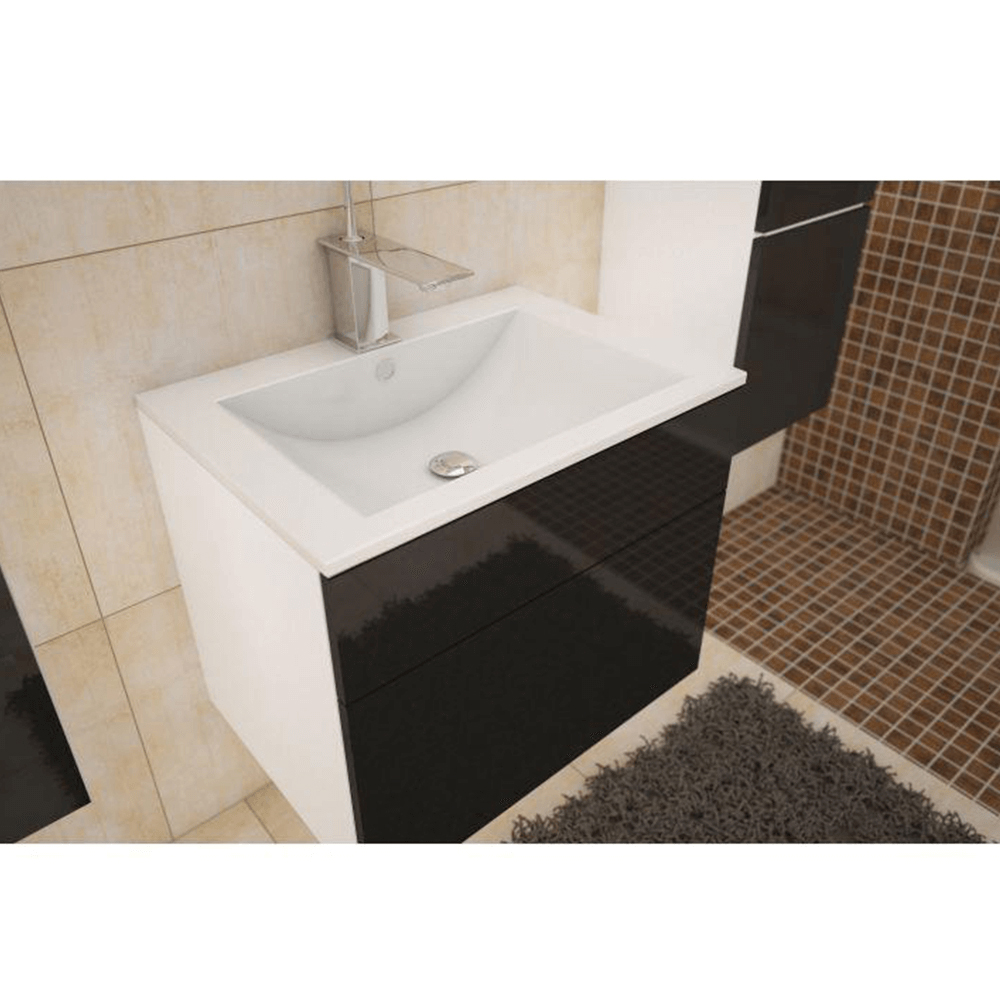 Kúpeľňová skrinka pod umyvadlo Maeve (biela + čierny extra vysoký lesk) je vysoko kvalitný výrobok vyrobený z MDF/DTD laminovaného materiálu. Skrinka je dostupná v bielom/čiernom extra vysokom lesku HG na dotykový systém PUSH UP. Rozmery skrinky sú 60x45x47 cm, čím je zaručená dostatočná kapacita pre uskladnenie kúpeľňových potrieb. Skrinka je dodávaná v demonte, čím je zaručená jednoduchá montáž a preprava. Skrinka Maeve skvelo zapadne do moderného kúpeľňového interiéru a jej vysoká kvalita zaručí spokojnosť zákazníka na dlhú dobu.