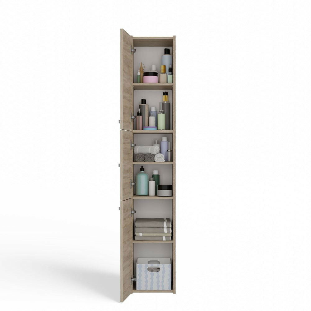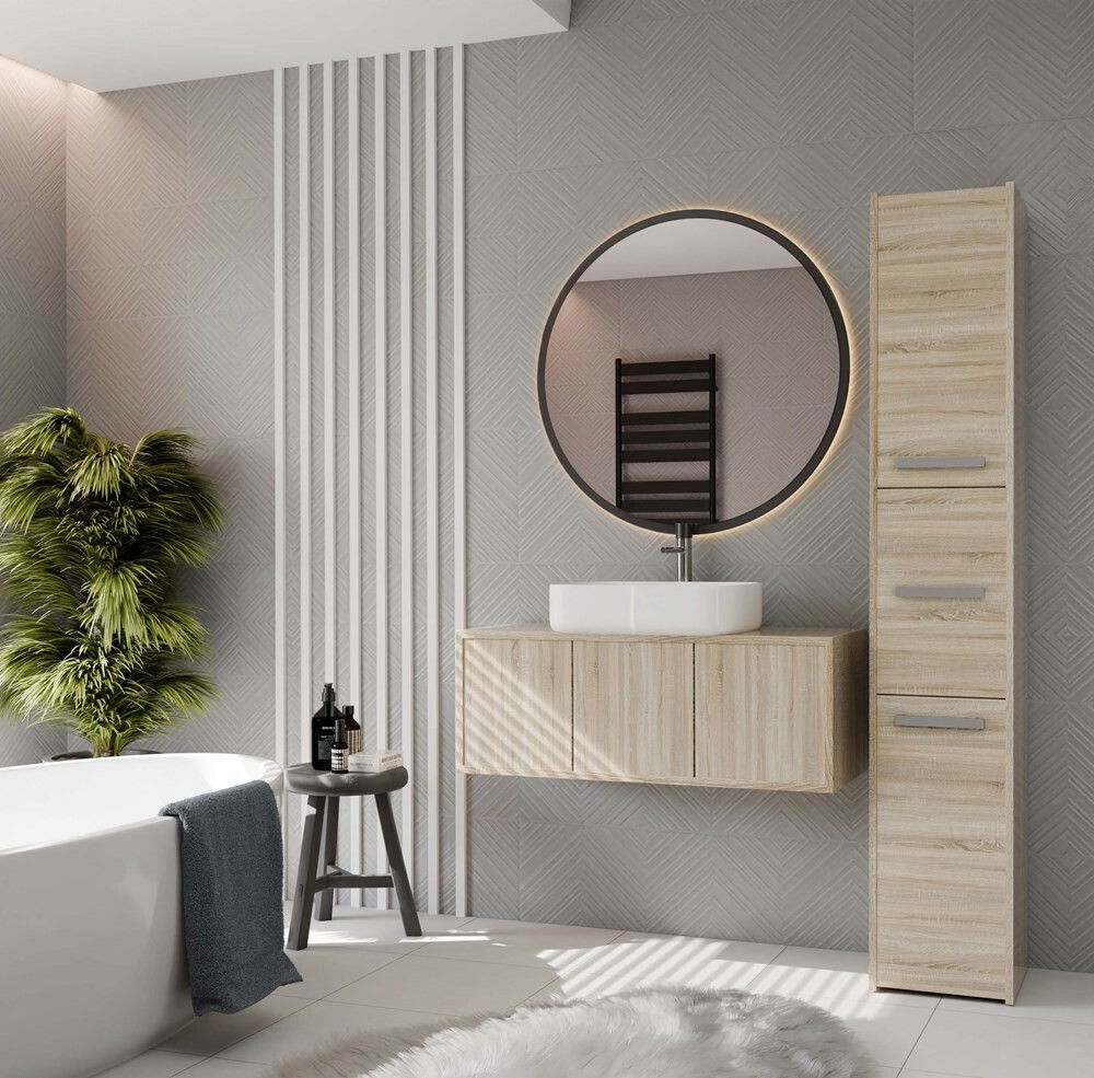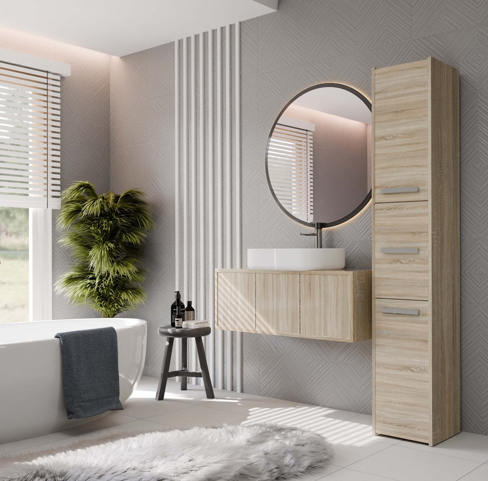 Kúpeľňová skrinka Samways 2 v elegantnej farbe dub sonoma je ideálnym riešením pre každú modernú kúpeľňu. Jej minimalistický dizajn s praktickými dverami zabezpečuje dostatok úložného priestoru bez zbytočného zaberania miesta, čím efektívne eliminuje chaos. Skrinka je vyrobená z kvalitnej laminovanej drevotriesky, pričom jej ABS hrany zaručujú vysokú odolnosť voči mechanickému a chemickému poškodeniu. S možnosťou voľby strany otvárania dverí prispôsobíte skrinku svojim potrebám. Tento kus nábytku kombinuje funkčnosť s estetikou, čím obohatí vašu kúpeľňu.