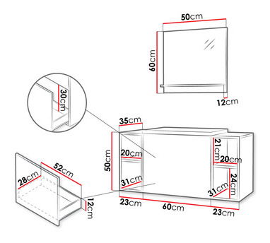 Skrinka pod umývadlo: šírka: 60 cm, výška: 50 cm, hĺbka: 35 cm,