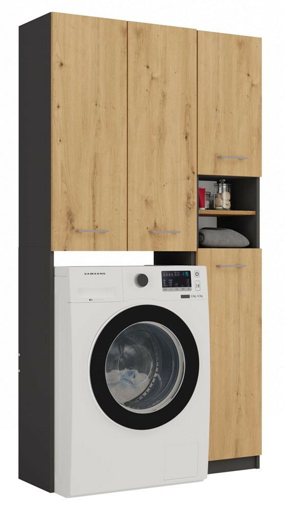 ZobraziťKúpeľňová zostava Molinos 2 v elegantnej kombinácii antracit a dub artisan je ideálnym riešením pre každú modernú kúpeľňu. S dostatočným priestorom na pranie, táto zostava efektívne eliminuje neporiadok a ponúka minimalistický dizajn, ktorý osloví každého, o preferuje jednoduché a elegantné línie. Kvalitné spracovanie z laminovanej drevotriesky a odolné ABS hrany zabezpečujú dlhú životnosť, zatiaľ čo univerzálne uchopenie dverí umožňuje prispôsobenie podľa vašich potrieb. Tento nábytok je skvelou voľbou pre praktické a štýlové usporiadanie vašej kúpeľne.
