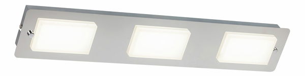 Kúpeľňové svietidlo Ruben 5724 (chrómová) je moderné a elegantné svietidlo s LED osvetlením. Toto svietidlo má tri vstavané LED zdroje s celkovým výkonom 4,5W. Má krytie IP44, ktoré chráni svietidlo pred vodou a prachom. Svetelné zdroje LED majú životnosť až 20 000 hodín a vydávajú príjemné prírodné bielé svetlo s teplotou 4000 Kelvinov. Svetelný výkon svietidla je 3x 387 lumenov a jeho spotreba energie je len 14,37 kWh/1000 hodín. Žiarovka je pribalená k svietidlu a je nevymeniteľná. Energetická trieda tohto svietidla je A++, A+ alebo A a je kompatibilné s týmito žiarovkami. Toto svietidlo dodáva vašej kúpeľni perfektné osvetlenie a moderný vzhľad.