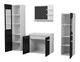 troch závesných skriniek, panelu so zrkadlom a umývadla. Praktické police budú nielen miestom na odkladanie uterákov, kozmetických prostriedkov či čistiacich prostriedkov, ale aj miestom pre dekorácie. Za sklom sa budú skvele vynímať ozdobné lampičky, parfumy či iné drobnosti. Celok dopĺňajú šikovné madlá hliníkovej farby. Kúpeľňový nábytok je možné doplniť aj o LED osvetlenie, ktoré je k dispozícii za príplatok.