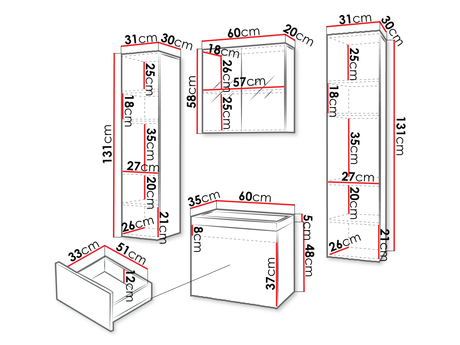 Závesná skrinka x 2 ks: šírka: 31 cm, výška: 131 cm, hĺbka: 30 cm