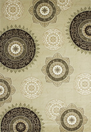 Koberec Aura 770 Beige vo svojej béžovej farbe ponúka nádhernú zmes kreativity a pohodlia. Vzory v tvare slnka pokytujú skvelú atmosféru. Vyrába sa zo 70 % polypropylénu - heatset - 30 % akrylu.