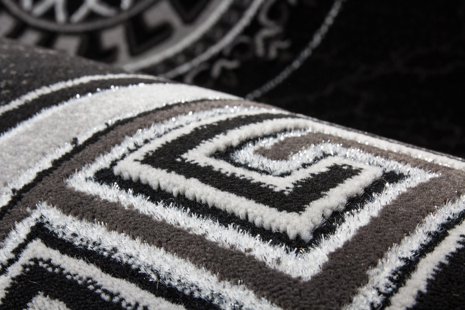 Koberec Aura v nádhernej čierno-šedej farbe je kombináciou kreativity a harmónie. Jeho 3D dizajn a klasické vzory vyžarujú z nenápadného mramorového pozadia pokojnú atmosféru. Koberec Aura je vyrobený zo 70% polypropylénu a 30% akrylu kombinovaný s lurexovou niťou, ktorá poskytuje kobercu nádherné svetelné efekty. Vďaka špecifickému spracovaniu je Aura koberec veľmi odolný a ľahko odstránite akékoľvek znečistenie. Je vhodný pre alergikov a podlahové vykurovanie. Výška vlasu +/- 11 mm, váha na meter štvorcový +/- 3.000 g a počet uzlíkov 504.000 na meter štvorcový.