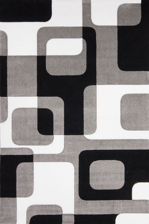 Koberec Lambada Handcarving 463 Silver - Black reprezentujú už na prvý pohľad hravé, kreatívne vzory, tvorené zaoblenými obdĺžnikmi bielej, čiernej a šedej farby. Vyrába sa zo 100 % polypropylénu - heatset - frisée.
