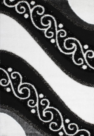 Koberec Selin 821 Silver Vás presvedčí svojim kontrastným sfarbením a jemnosťou. Obsahuje hravé vzory, tvorené čiernou a bielou farbou. Vyrobený je zo 70 % polyesteru - 30 % polypropylénu - heatset - frisée.