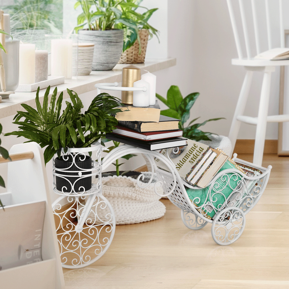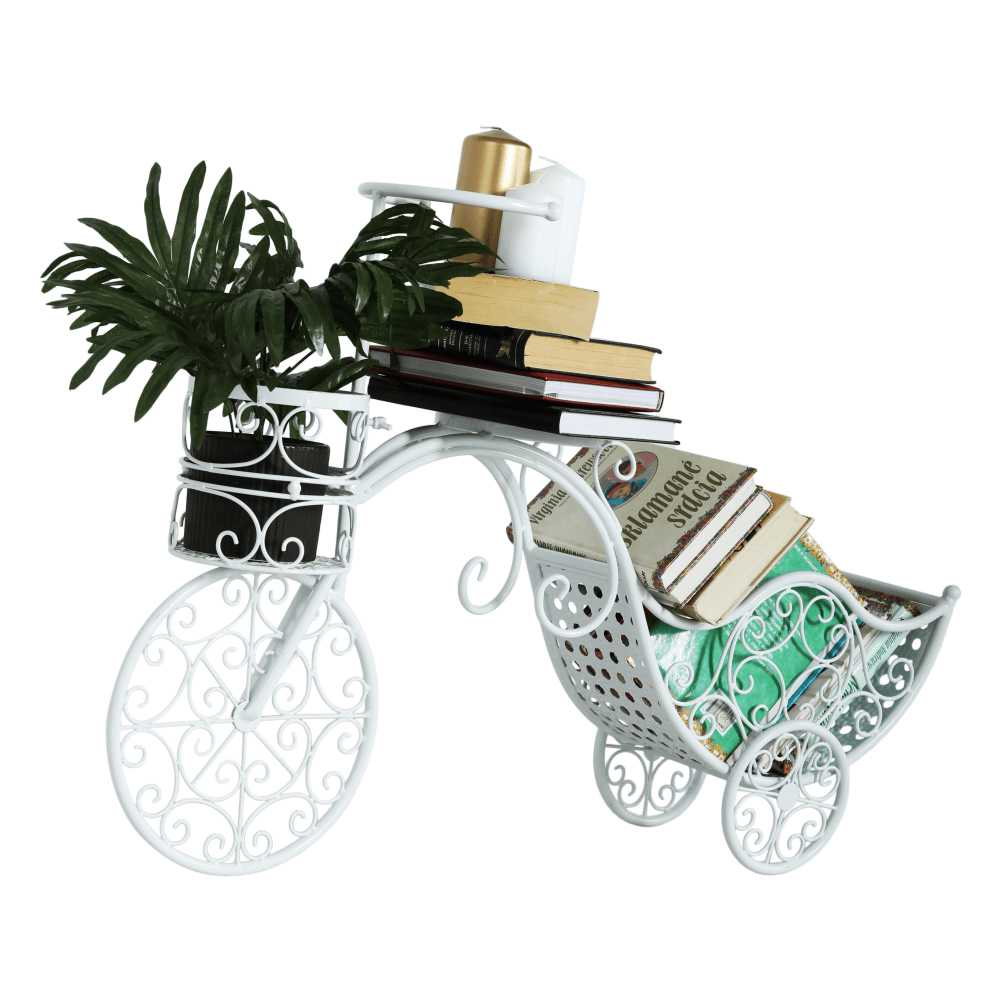 Kto by nemiloval kvety?! Čaro spočíva v ich čistej a prirodzenej kráse a neodolateľnej vôni. Jednoducho vytvoria príjemný pocit prakticky kdekoľvek. Ich efekt sa znásobí originálnym kvetináčom. Alaria je presne to, čo hľadáte. Kvetináč v tvare bicykla je zdobený nádhernými špirálovými detailami, ktoré robia kvetináč tým, čo je. Alaria ozdobí interiér, aj exteriér. Tento kovový stojan na rastliny je navrhnutý s držiakom v prednej časti, s vozíkom v zadnej časti. Jeho biele prevedenie pôsobí romanticky, vzdušne a elegantne. Nechajte zažiariť vašu terasu či záhradu týmto neobyčajným kvetináčom v RETRO štýle.