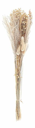 Skrášlite akúkoľvek miestnosť tým, že ju doplníte krásnou kyticou kvetov. Táto kytica zo sušenej okrasnej trávy je vďaka svojim dlhým stonkám ideálna na umiestnenie do vysokej vázy, ktorú možno položiť na nízku skrinku alebo priamo na podlahu. Vďaka prirodzenej kráse a textúre je vhodnou voľbou do akéhokoľvek interiéru.