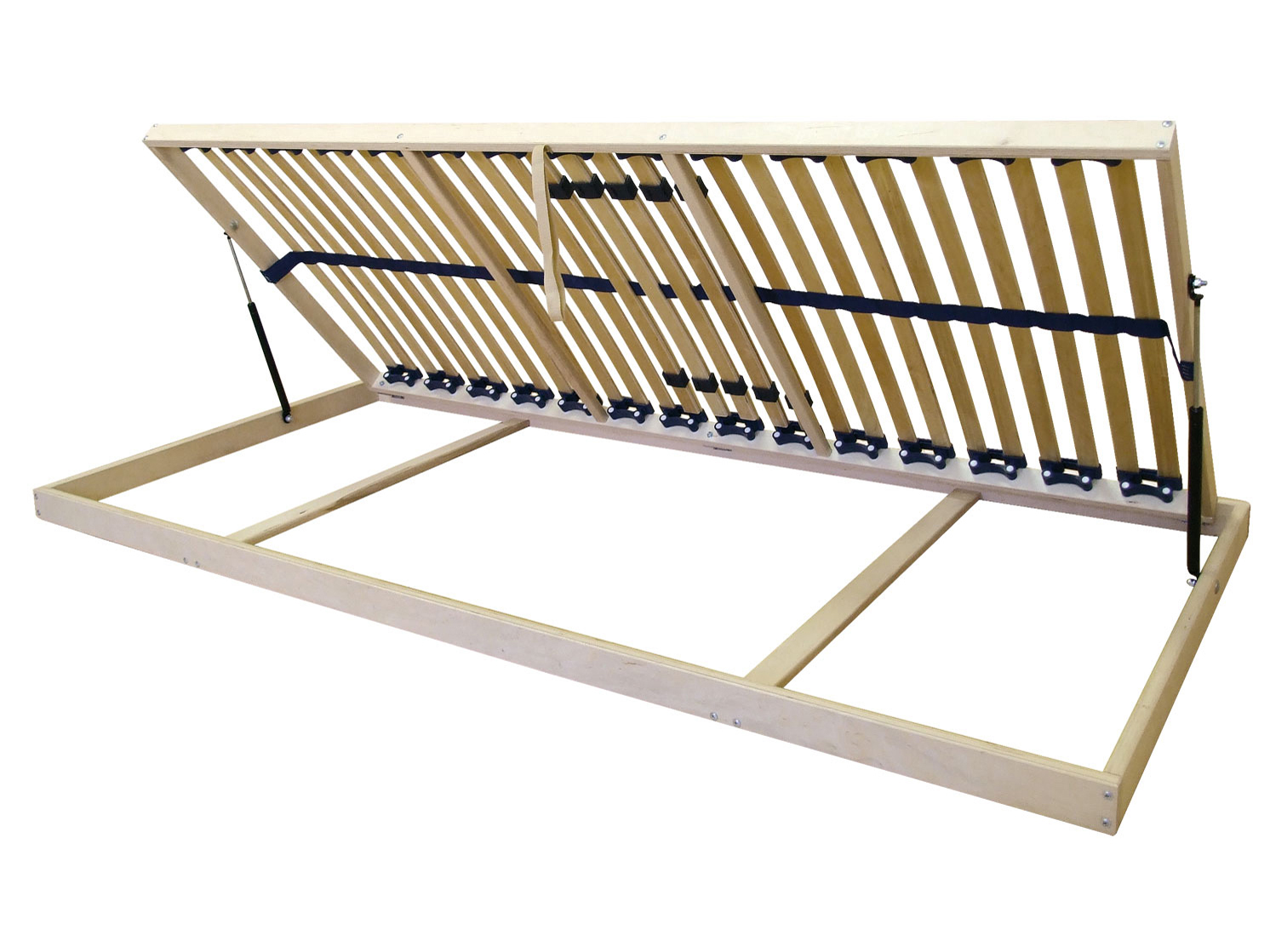 Systém umožňujúci prístup do úložného priestoru postele zdvihnutím roštu z boku, štandardné vyhotovenie s piestovým vyklápaním, spevňujúci stredový popruh. 5 zdvojených lamiel pre nastavenie tvrdosti.