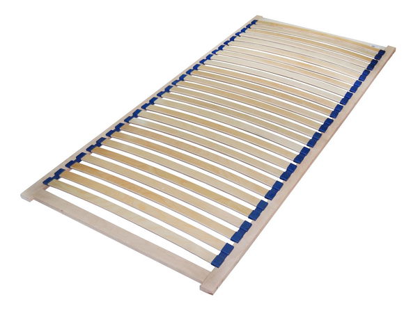 Lamelový rošt na jednoduchom ráme. Lamely sú lepené z pružného dreva so šírkou 32 mm.