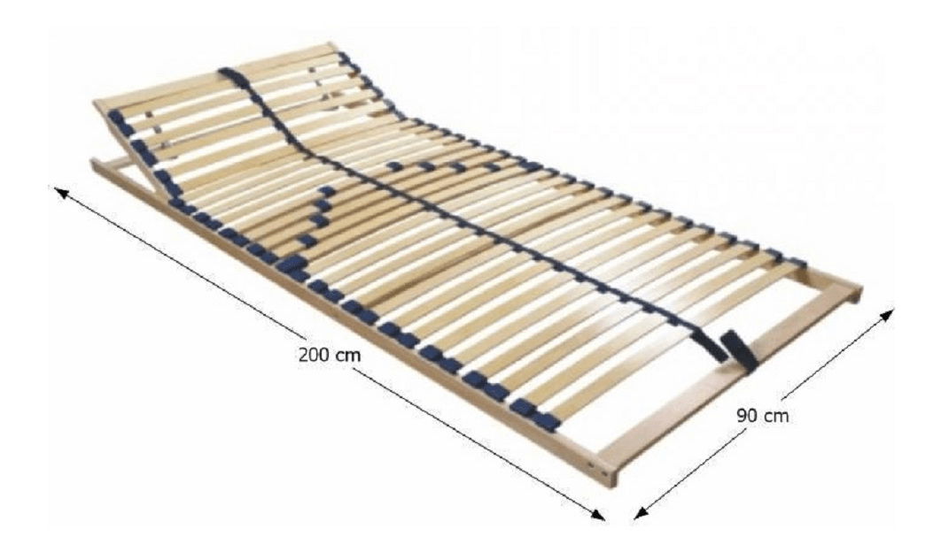 Každý rošt je o 1 cm užší a 4 cm kratší od udaného rozmeru, napr. 90x200 = 89x196 cm.