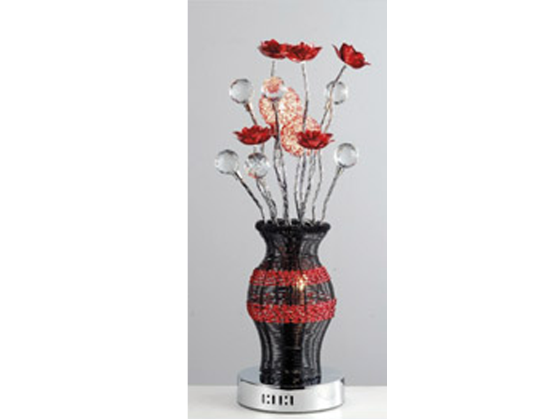 Dizajnová stolná lampa KB81 kladie dôraz na detaily. Dizajnovo pripomína vázu, z ktorej vychádzajú kvetiny. Lampa je v čierno-červenom prevedení a je vyrobená z kovu a skla.